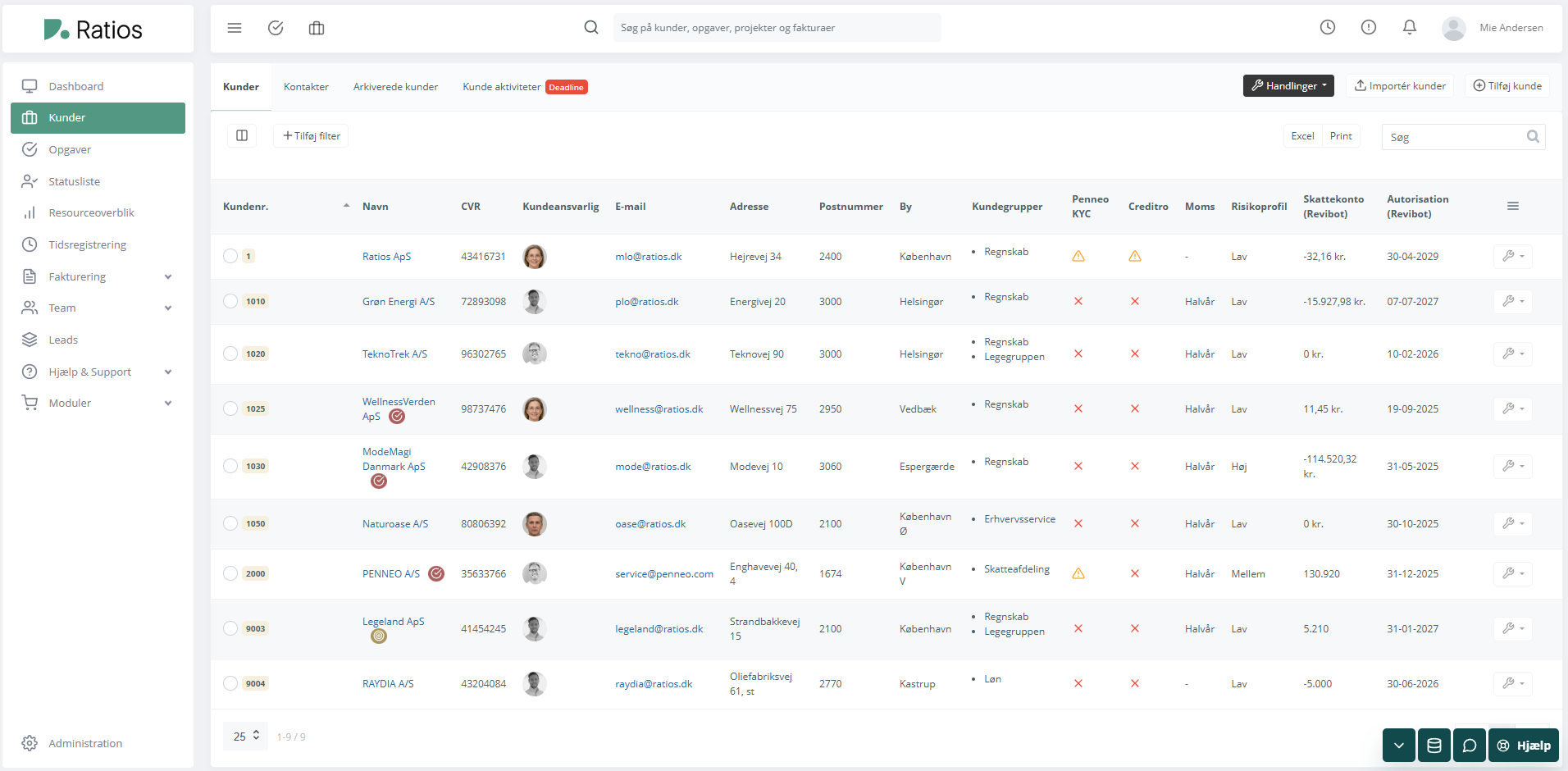 Kundemodulet i Ratios’ er skabt med det formål at lette og effektivisere håndteringen af klientrelationer. Med fokus på at imødekomme de unikke behov og krav, som revisorer står overfor, tilbyder dette modul en omfattende og brugervenlig platform til at oprette, administrere og efterfølgende pleje klientforhold.